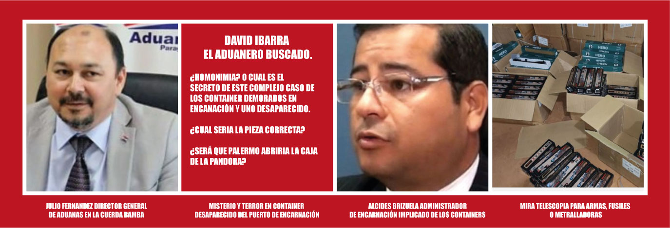 SANTA ROSA DEL AGUARAY (Corrupción y Coima, por Carlos Roa) De último momento, el incognito personaje vinculado supuestamente a los containers, resguardado por más de cinco meses en el puerto de Encarnación donde no pudieron ingresar a destino que era Ciudad del Este, por los mamotretos en los papeles del MIC/DTA y que por tal motivo se derivó después de mucho pleito y empujones a Ciudad del Este para su verificación por si acaso se pudiera hacer unos arreglo$$ para alivianar los costos o tributos de estas mercaderías o simplemente esconder y apañar que eran piratas los productos traídos desde china. Y nos enteramos, al filo del mediodía, de que habría un dueño de estas mercaderías que sería un aduanero y que el nombre misterioso es David Ibarra. Según buenas fuentes, el funcionario de aduanas que estaría ligado al fato de los contenedores en la ciudad de Encarnación es el funcionario de Vistas de nombre David Ibarra pero que el director defiende a capa y espada que puede ser HOMONIMIA (claro que puede ser homonimia!) es cuestión de averiguar, pero por qué se omitió el nombre desde el primer momento?? Este hecho es totalmente estrafalario o miravolante por la forma en que se encararon las diligencias, desde su llegada a Uruguay, donde dicen las fuentes fidedignas de que se abonó cinco mil dólares para hacer los cambios de documentación, o sea, preparar un mamotreto, y luego la historia ya lo saben la mayoría, el administrador Alcides Brizuela en controvernio con Julio Fernández siempre se mantuvieron a la defensiva, hasta tratan de callar a la prensa de una u otra manera. Estos difrazan las miras telescópicas para armas, hacen figurar como binoculares, nos informa uno de nuestros 25 informantes de aduanas, y que esto es actuar cotidiano de los muchachos aduaneros o importadores, tratando de engañar al papá mono con banana de plástico.