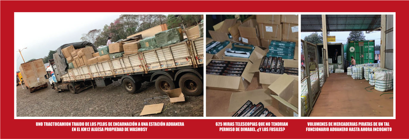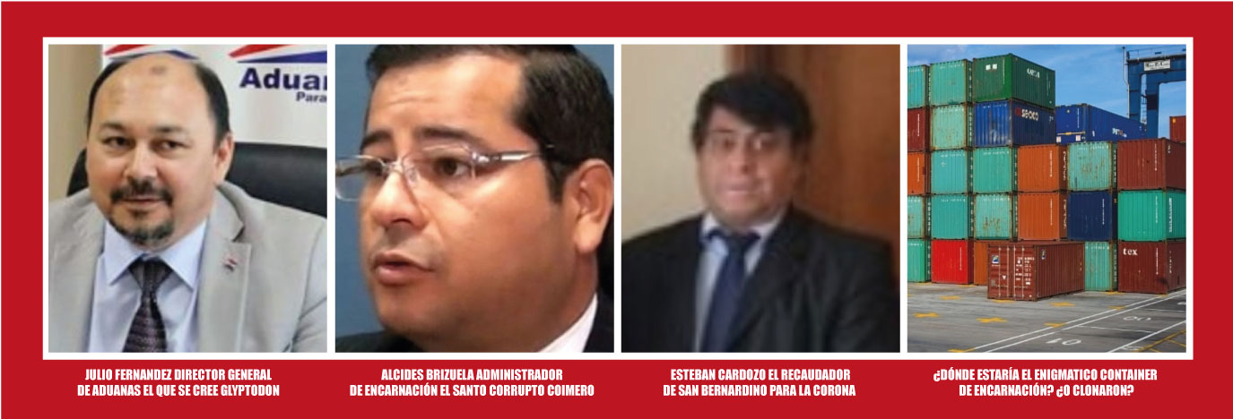 Los documentos internacionales de cartas, el MIC/DTA que es el documento madre para transitar desde la aduana de origen hasta aduana de destino final que fue Paraguay y donde llama poderosamente la atención la desaparición de uno de los containers que podría tener incluso armas, porque no van a meter telescopios para mirar a la vecina. Donde también el propio senador Enrique Baccheta, acusa al director de Aduanas, Julio Fernàndez, que debería ser destituido por corrupto no coimero. También el propio Enrique Riera en un programa televisivo con Mina Feliciangeli soslayó que Fernández recibe coimas a través de sus ta yra, a lo cual agregamos, según aduaneros que hace años y conocen este esquema corruptivo como la palma de sus manos, como Esteban Cardozo, Francisco Sánchez, Luis López alias Lopito, Nelson Ferreira, Aldo González, Miguel Angel Coco Valdovinos, Alcides Brizuela, y otros, así como Adrián Giménez de Trans Trade, Juan Carlos Machuca, Luis López kavajú el hombre de la camioneta nueva de 40 mil dólares, involucrado en el tema de insumos en el aeropuerto Silvio Pettirossi y que misteriosamente no está imputado, y otros secuaces de él que también hacen la vista gorda. Y este señor viene con el cuento chino que quiere prohibir de contar lo que los propios informantes aduaneros, que no los voy a delatar nunca, cuyos informes son muy certeros, tanto es que el caso de los containers de Encarnación, el viernes ya publicamos y había productos de rara procedencia y al revisar, había productos pirata en toda la dimensión y se encontró también telescopios para fusiles y de yapa un container desaparecido. Where is the container? (dónde está ese container?) Y no es solo eso, dicen que hay un aduanero, que sería uno de los propietarios de la mercadería, y no quieren poner a luz el nombre, porqué será?