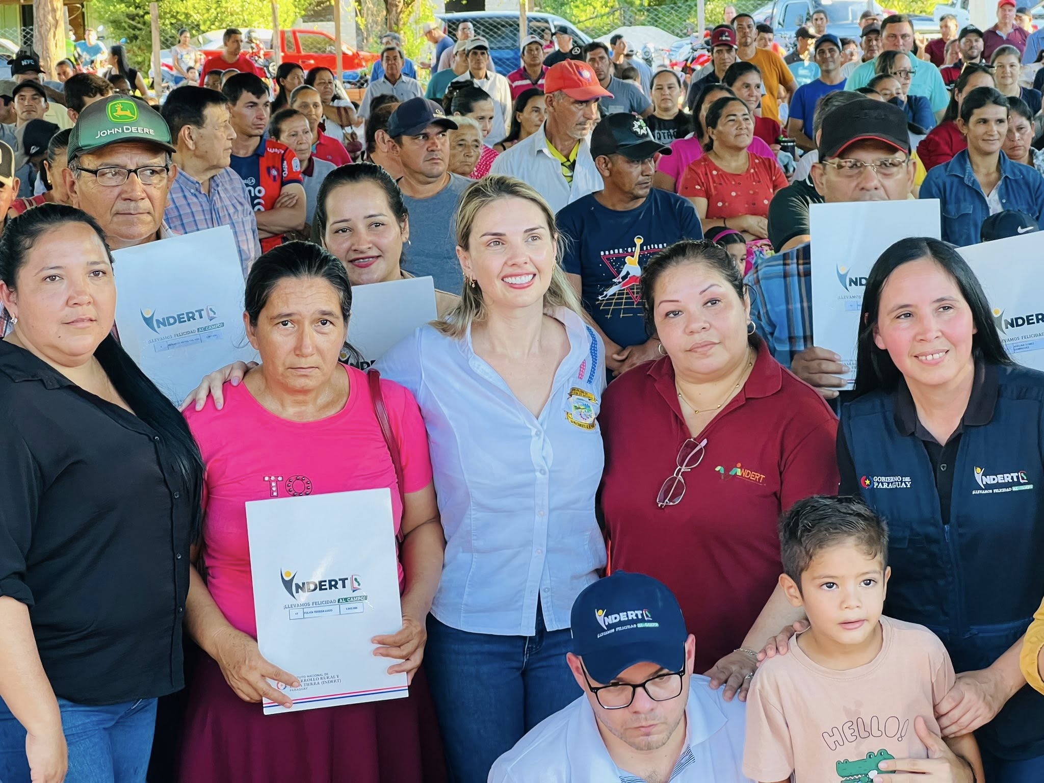 El evento contó con la presencia de autoridades nacionales y regionales, entre ellas la Gerente del SIRT Lic. Cristina Melgarejo, el Director Regional del Indert Abg. Wilson Borja, el Diputado Nacional Leonardo Saiz, la Presidenta de la Junta Municipal Lic. Mercedes Giménez y el Concejal Departamental Mario Benítez. Todos acompañaron a las familias en este logro que fortalece la comunidad.
