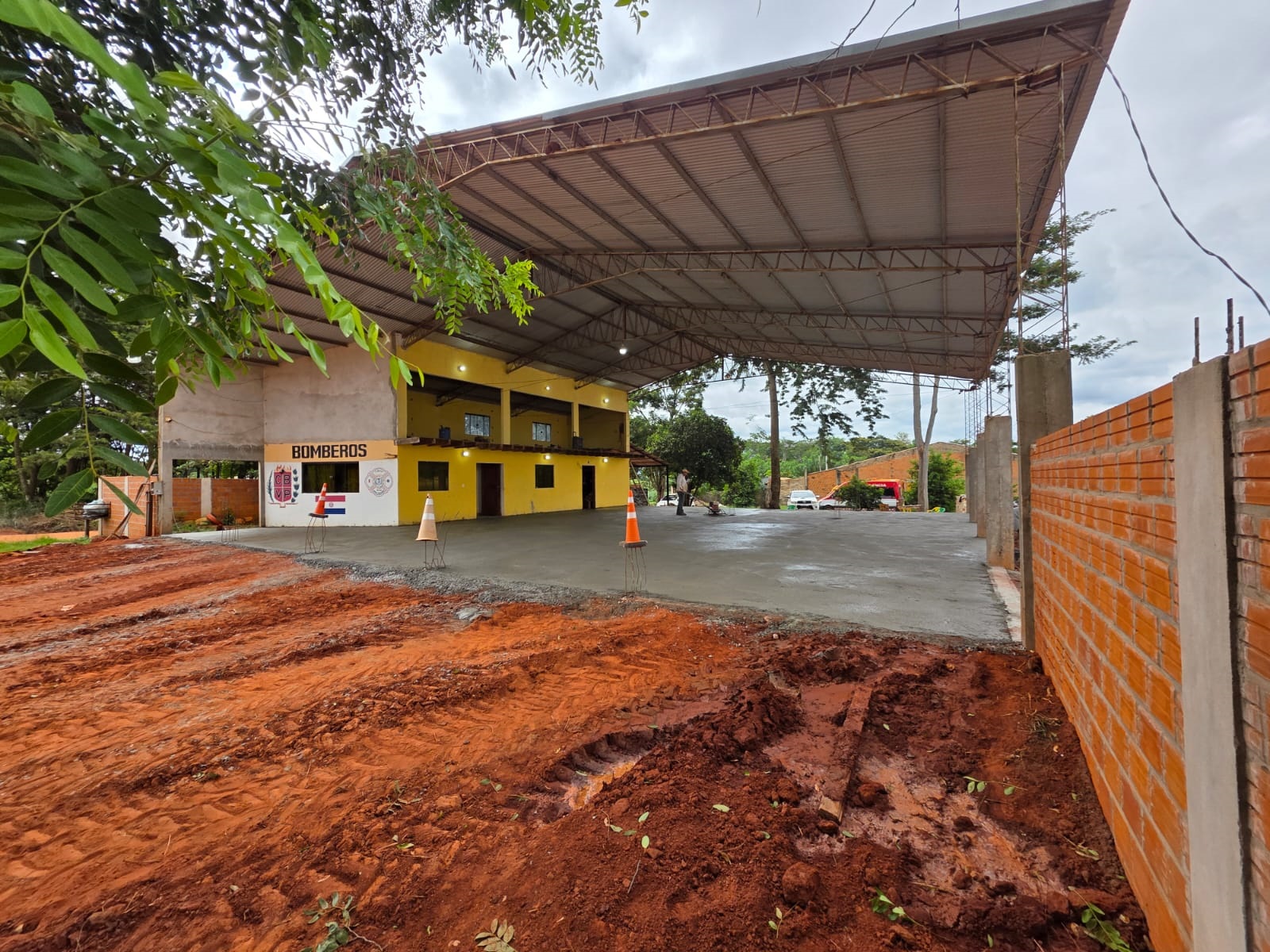 Según se observa en las imágenes, los trabajos se desarrollan bajo una amplia estructura techada, lo que permitirá contar con un espacio más seguro, funcional y adecuado para las tareas operativas de los voluntarios. Este avance representa un paso clave para optimizar las condiciones de trabajo, facilitar el resguardo de móviles y equipos, y mejorar la capacidad de respuesta ante emergencias.