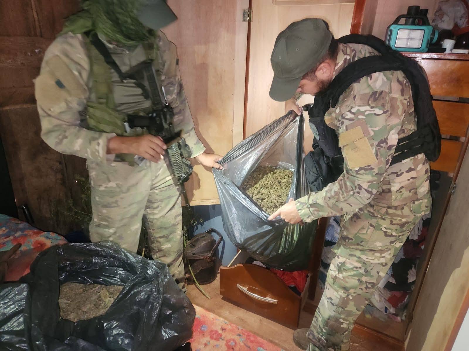 Durante la intervención, los agentes lograron sacar de circulación más de 517 kilogramos de marihuana, entre producto en etapa de secado y picado. Asimismo, se procedió a la erradicación de dos hectáreas de cultivos en fase de crecimiento y a la eliminación de plantines en etapa inicial, lo que representa un golpe significativo a la producción de esta droga en la región. La logística encontrada incluía sistemas de iluminación artificial diseñados para maximizar el rendimiento del cultivo ilícito, lo que demuestra el nivel de organización de la estructura criminal.