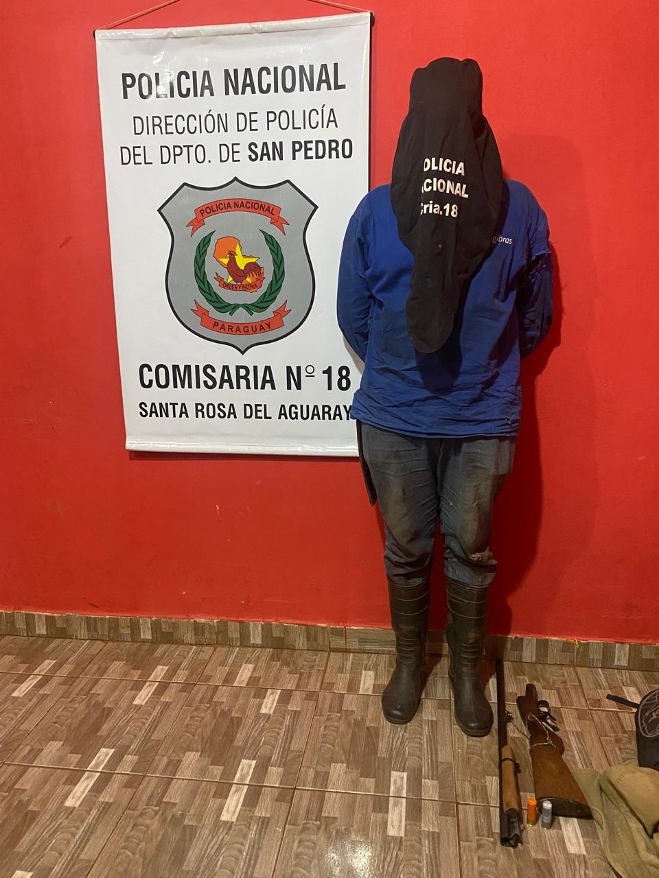 SANTA ROSA DEL AGUARAY (Policiales pro Fredy González) Un hombre fue detenido en la tarde del martes 14 de abril de 2026 en la ciudad de Santa Rosa del Aguaray, departamento de San Pedro, tras ser sorprendido incumpliendo medidas cautelares y circulando con un arma de fuego, además de exponerse al peligro en el tránsito terrestre.